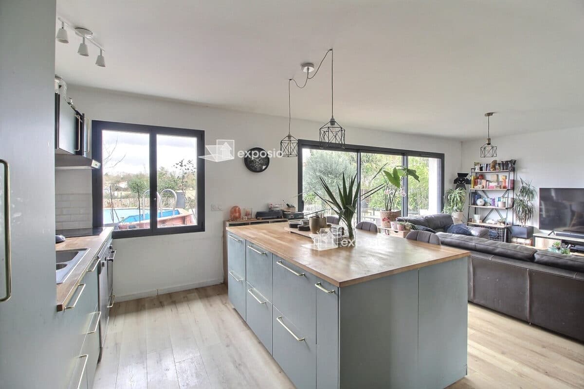 Maison de plain pied de 100m² comprenant grande pièce de vie de plus de 50m² très lumineuse, une buanderie, trois chambres (dont une avec penderie), un wc et une salle d’eau.
